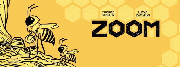 “Zoom” é o primeiro volume, único lançado até então, de uma saga em três volumes criada por Thobias Daneluz e Lucas Zacarias, no quadrinho é tratado o assunto da desordem do colapso das colônias (DCC), uma questão antevista por Albert Einstein e já explorada em outras mídias como a série “Black Mirror”.
