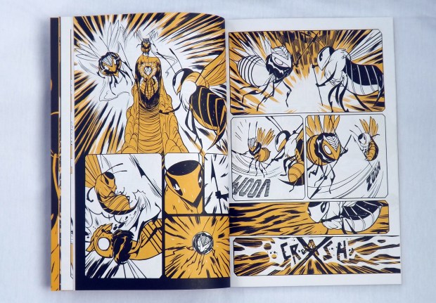 O roteiro compartilhado com Lucas Zacarias é eficiente no que se propõe. Há aqui um tom de urgência, você se preocupa com o fim da colmeia e também torce para que Faizah, Zolae e Zara consigam encontrar alguma forma de salvar as abelhas não só da rainha tirana, mas também da terrível visão de destruição causada pelas Xibalbas, que pelo menos na minha cabeça pode se revelar uma ameaça bem diferente do que as abelhas creem ser.