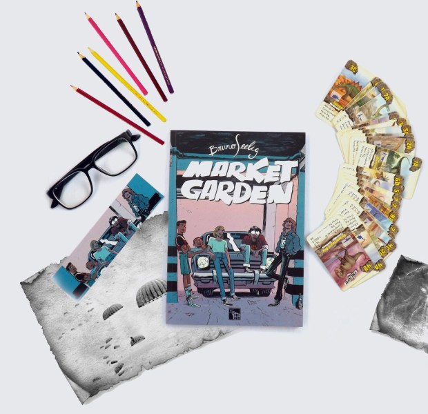 “Market Garden” é uma HQ nacional do quadrinista Bruno Seeling, lançada na CCXP de 2017 e publicada pela Editora Mino, o álbum reúne duas estórias, sendo a primeira delas “Blitzkrieg” lançada em 2016 de forma independente e indicada ao 29º Troféu HQMix, o “Oscar dos quadrinhos nacionais”, na categoria de Melhor Publicação Independente de Autor e a segunda inédita que dá o nome ao álbum.