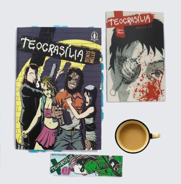 “Teocrasília” é o mais recente projeto do quadrinista carioca Denis Mello, anteriormente ele havia trabalhado em parceria com a roteirista Ana Recalde no quadrinho “Beladona”, projeto que lhes rendeu uma indicação ao troféu HQ Mix. Esse novo projeto começou a ser criado em 2016, tendo seu prólogo publicado naquele ano e o trabalho principal, a HQ “Teocrasília”, agora em 2018 juntamente com uma revista extra criada em um desafio em conjunto com o também quadrinista Rapha Pinheiro, criador da HQ “Salto”, que consistia em um período de 24 horas de imersão na arte de desenhar.