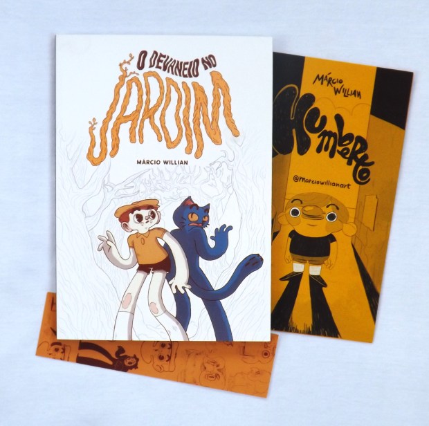 Um projeto que eu não consegui apoiar no Catarse, mas fiquei muito feliz por ter conseguido comprar durante o evento, foi o “O Devaneio no Jardim” do Márcio Willian e gente, que simpatia! Mal cheguei na mesa e já ganhei um exemplar do zine “Humberto”, além de super simpático, o Márcio tem um traço muito pecúliar que me agrada demais, é um traço que eu descreveria como MISTERIOSO, não sei se isso faz sentido. No quadrinho, Thomas foge do Nazismo embarcando em uma jornada incerta e acaba parando em uma floresta misteriosa habitada por seres falantes e passa a vagar em busca de uma saída.
