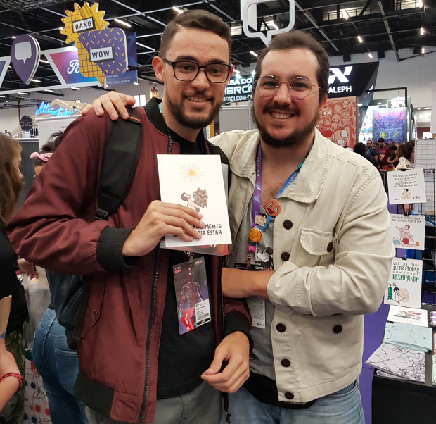 A Camila estava no corredor C e o corredor C nessa edição do evento era a coisa mais maravilhosa do mundo e EU POSSO PROVAR! Eu finalmente tive coragem de me aproximar da lenda viva Aureliano, a.k.a Oi, Aure. Lembro que na CCXP de 2017 eu nem consegui me aproximar da mesa dele, tamanha era minha timidez kkkk, esse ano eu venci essa besteira e GENTE, Aureliano é uma pessoa iluminada, fofa, daquelas que dá vontade de guardar num potinho. Ele assinou o meu exemplar de “Mercúrio Cromo”, viu as páginas que eu marquei durante a minha leitura e eu não consegui me segurar quando vi um print dele que me fez lembrar uma canção da Pitty. Enfim, eu nem sei como, mas consegui pedir até foto! Ah, eu também comprei os auresivos e eles são lindos.