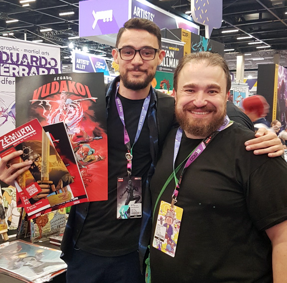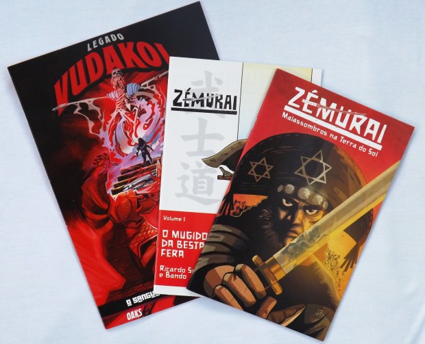 Além disso, pude conhecer o Tiago Oaks, autor de ” O Filho da Queda: O Herege” que foi super simpático e me encheu de presentes, eu já havia comprado mais cedo o quadrinho “Legado Vudakol” que é um trabalho roteirizado pelo Oaks, com capa dele e ilustrações do Ricardo Sousa e acabei ganhando o print do quadrinho e duas edições de “Zémurai” que estou louco para ler logo, muito obrigado pelo carinho Tiago!
