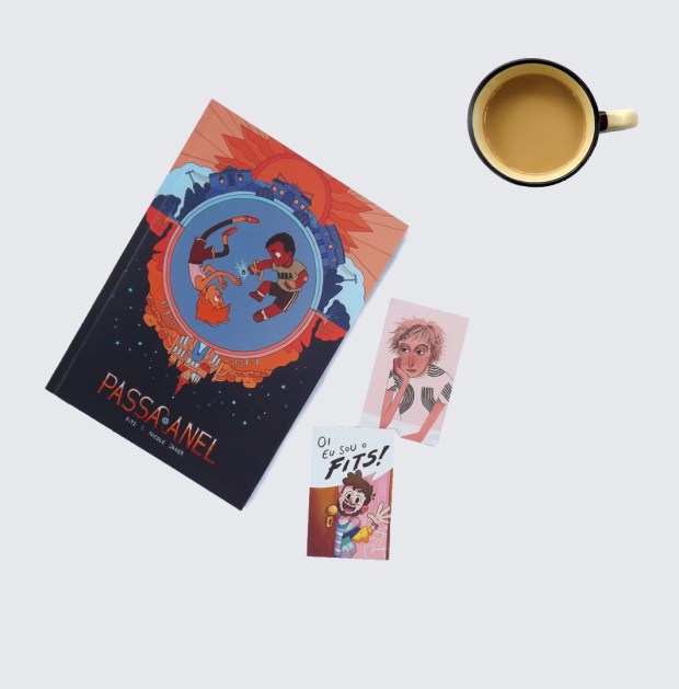 Ainda no corredor C, fui buscar o meu famigerado “Passa Anel” o quadrinho criado em conjunto pelo Fits e pela Nicole Janer, ambos uns fofos! Lembro que quando passei na mesa deles, o Fits perguntou meu nome, depois a Nicole perguntou: Lucas é normal? Aí eu viajei pensando, será que eu respondo que sou normal? kkkkk deu um bug, mas a credencial me salvou do embaraço kkkk. Eu não tive coragem de pedir fotinho para os dois, mas de novo, são DOIS FOFOS!!! O quadrinho conta a estória de Samu e Bel, dois grandes amigos que encontram um anel mágico com um poder ancestral.