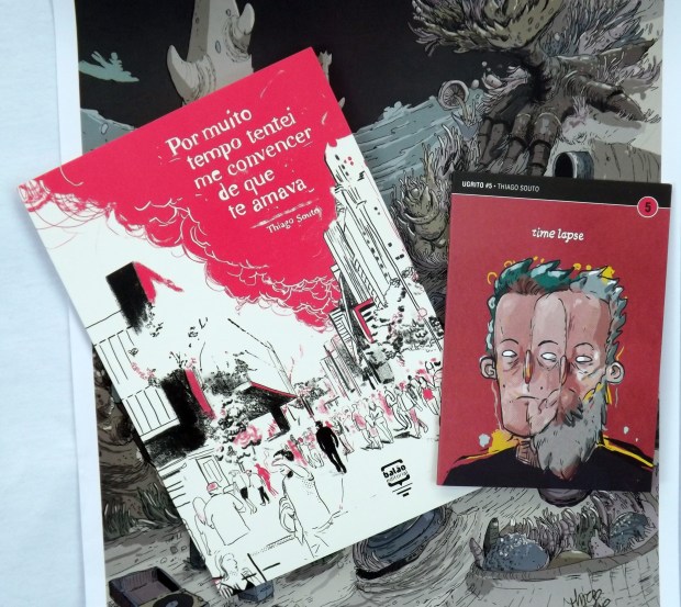 Também fui conferir o novo lançamento do Thiago Souto, o “Por muito tempo tentei me convencer de que te amava”, e aproveitei para levar o zine “Timelapse” e um print lindo do quadrinho mais lindo que eu li esse ano, o “Labirinto”.  Nesse novo trabalho, o quadrinista deixa a fantasia de lado para falar sobre a cidade de São Paulo, sobre o que ela tem de melhor, em uma ode à diversidade, à convivência.